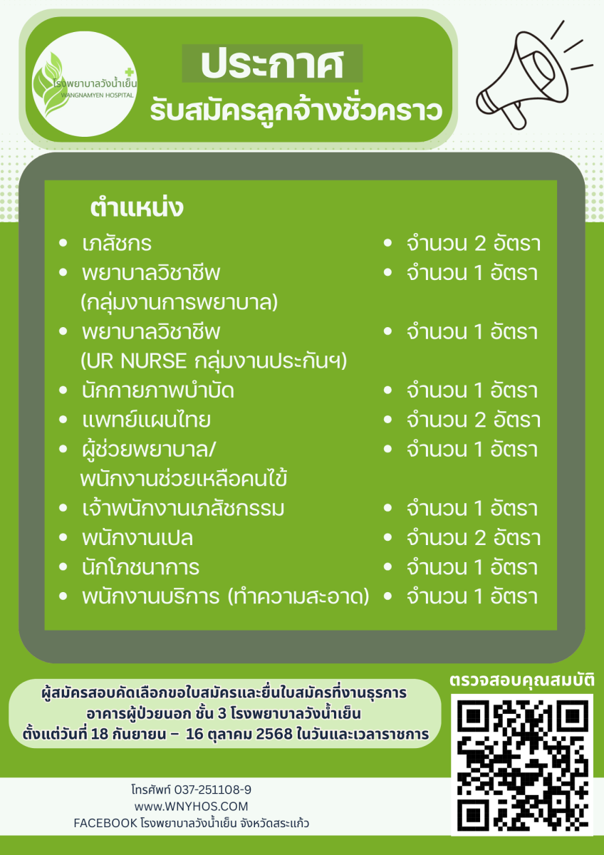 Copy Right@2020-2021 | โรงพยาบาลวังน้ำเย็น