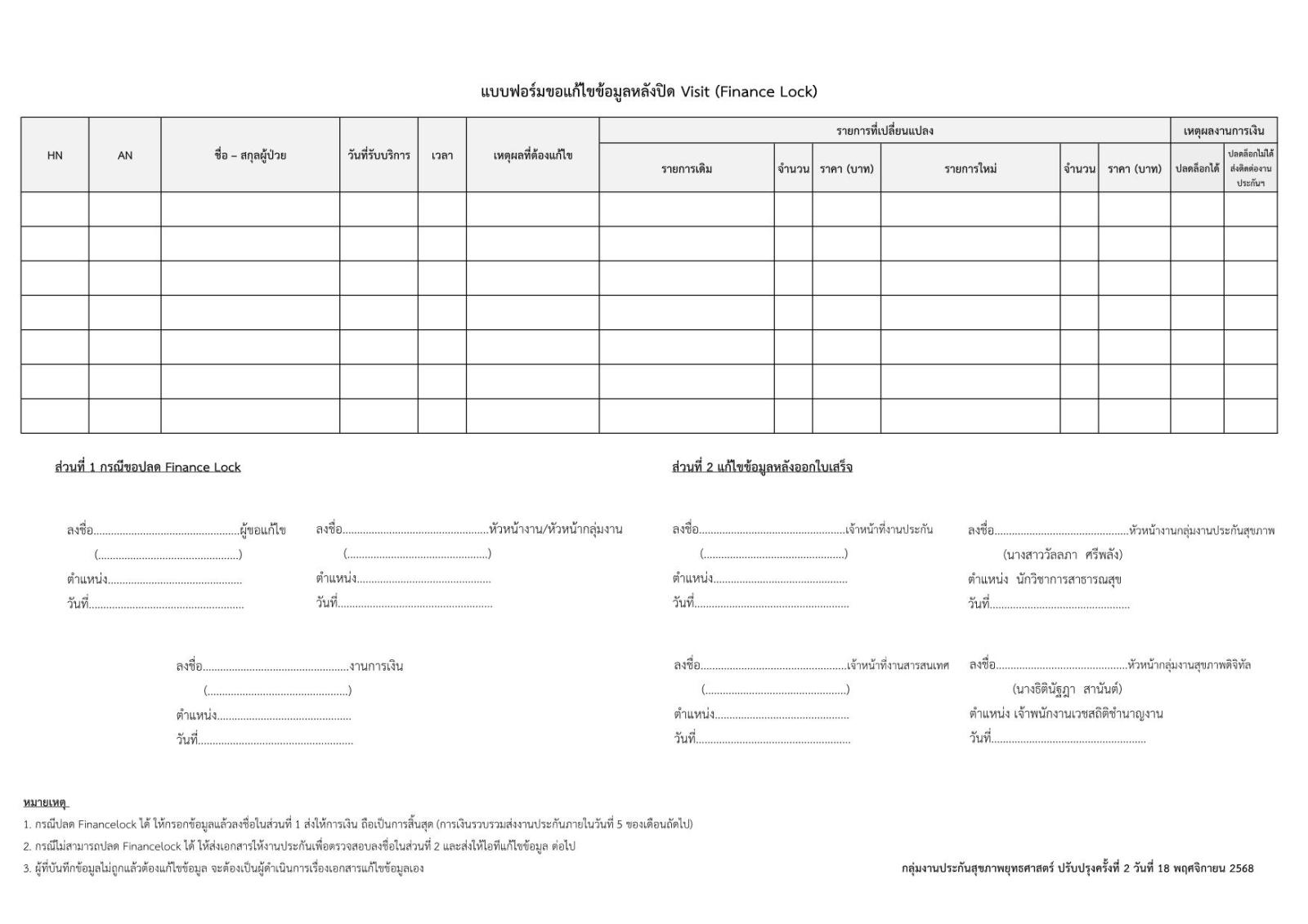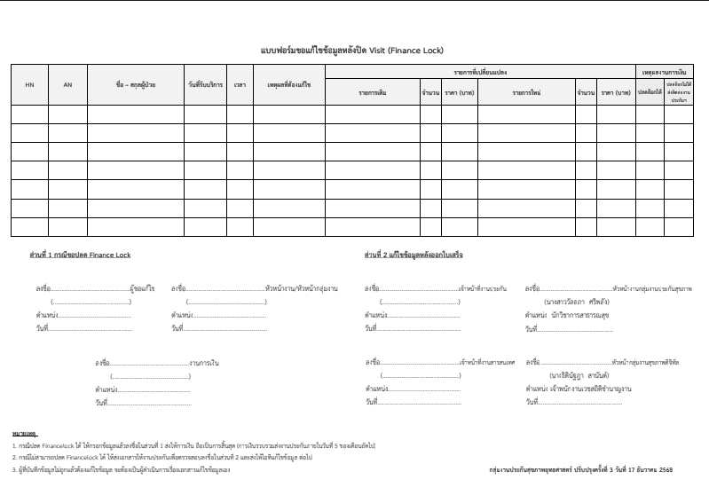 แบบฟอร์มขอแก้ไขข้อมูลหลังปิดสิทธิ