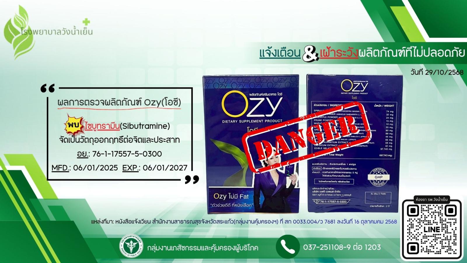 ขอความร่วมมือทุกท่านเฝ้าระวังผลิตภัณฑ์เสริมอาหาร โอชี ผลการตรวจวิเคราะห์ ณ สำนักยาและวัตถุเสพติด กรมวิทยาศาสตร์การแพทย์ พบยาไซบูทรามีน(Sibutramine) จัดเป็นวัตถุออกฤทธิ์ต่อจิตและประสาท ในประเภท 1 ตามประกาศกระทรวงสาธารณสุข มีรายงานถึงผลกระทบต่อระบบหัวใจและหลอดเลือด ทำให้เกิดผลเสียร้ายแรงจนถึงแก่ชีวิต