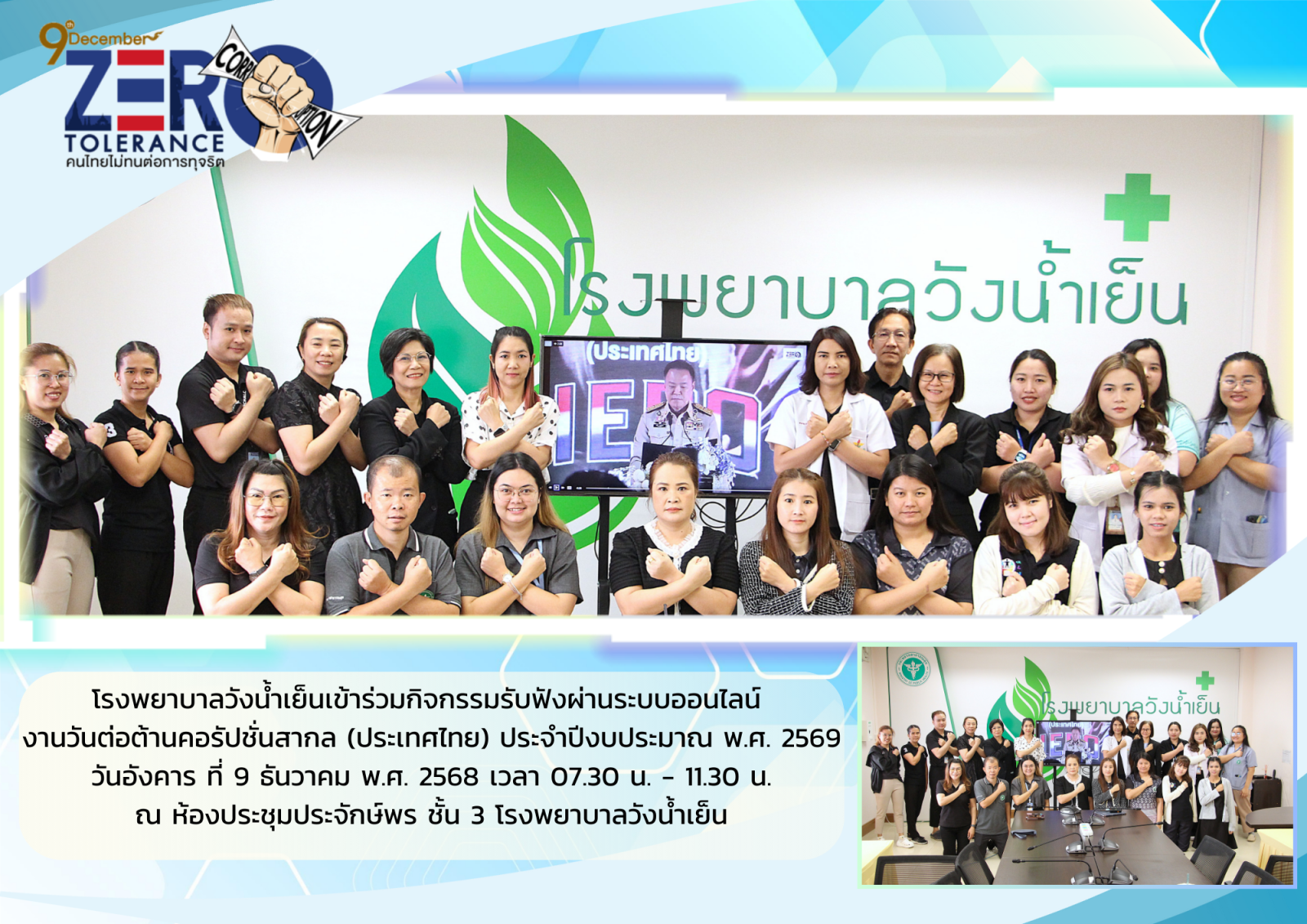 โรงพยาบาลวังน้ำเย็น เข้าร่วมกิจกรรมรับฟังผ่านระบบออนไลน์ "วันต่อต้านคอร์รัปชันสากล (ประเทศไทย)" ประจำปีงบประมาณ พ.ศ. 2569