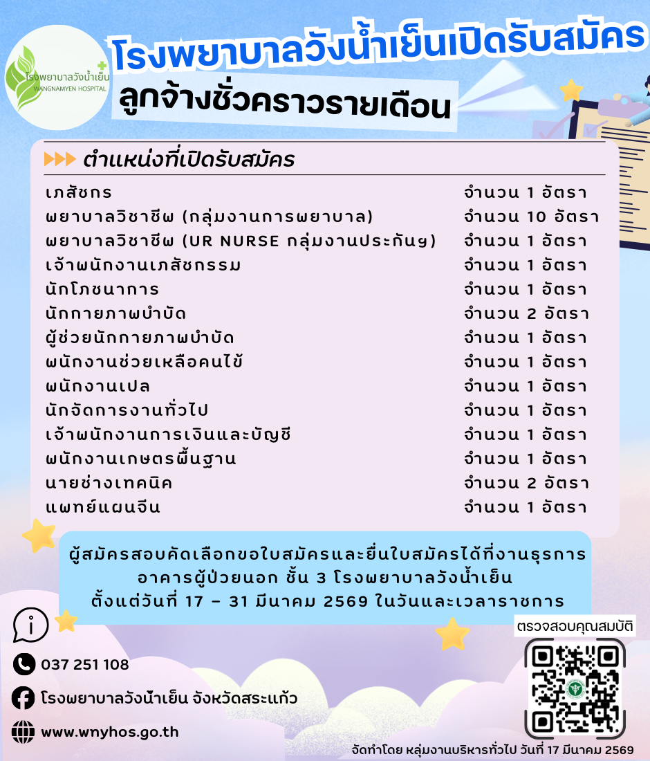 เปิดรับสมัครตั้งแต่วันที่ 17 - 31 มีนาคม 2569